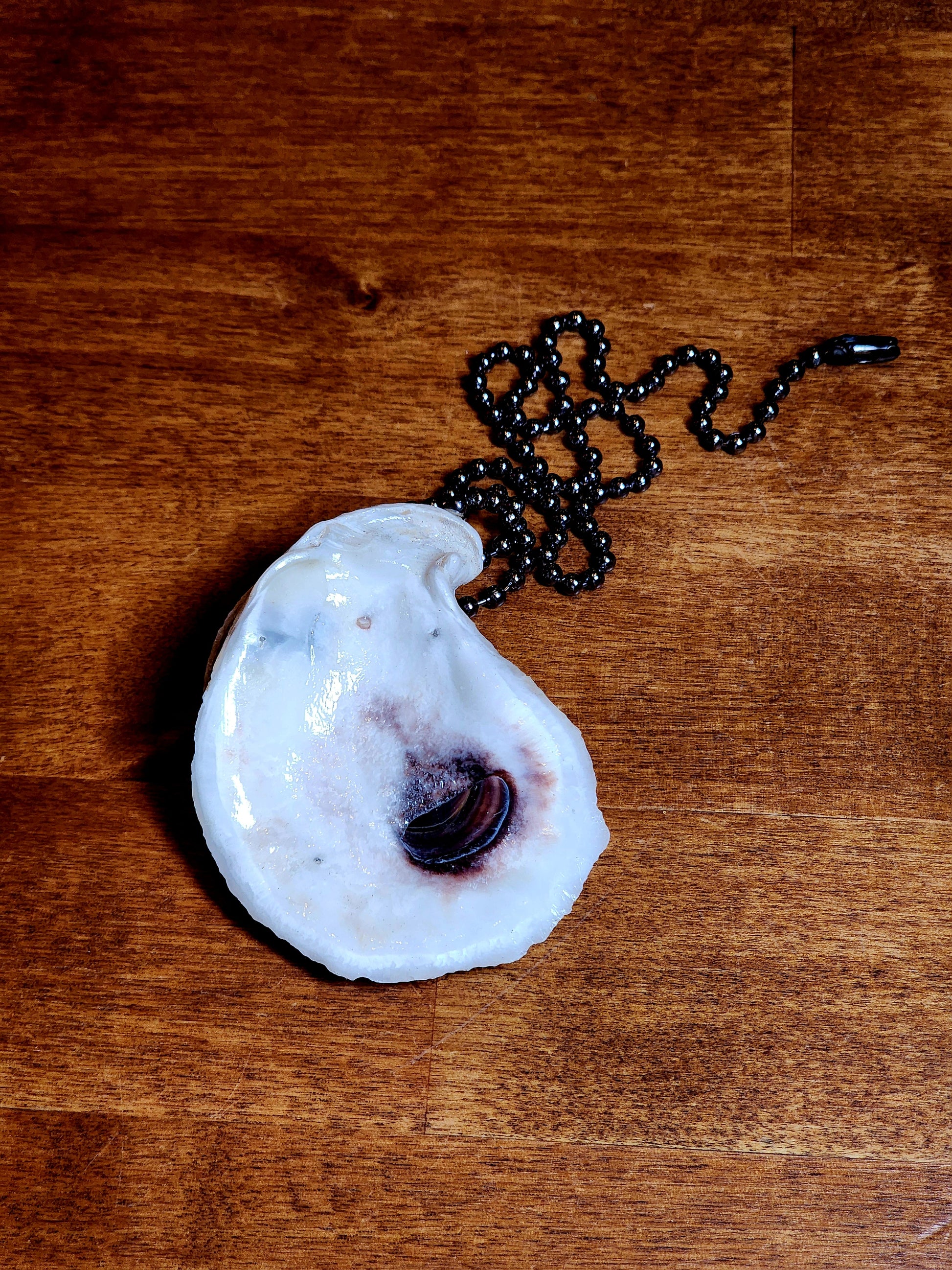 Each shell is approximately 3" inches in size. The shells are securely attached to an 18"inch bronze bead ball chain. Each chain has a connector, making them ready to attach to any ceiling fan or lamp.