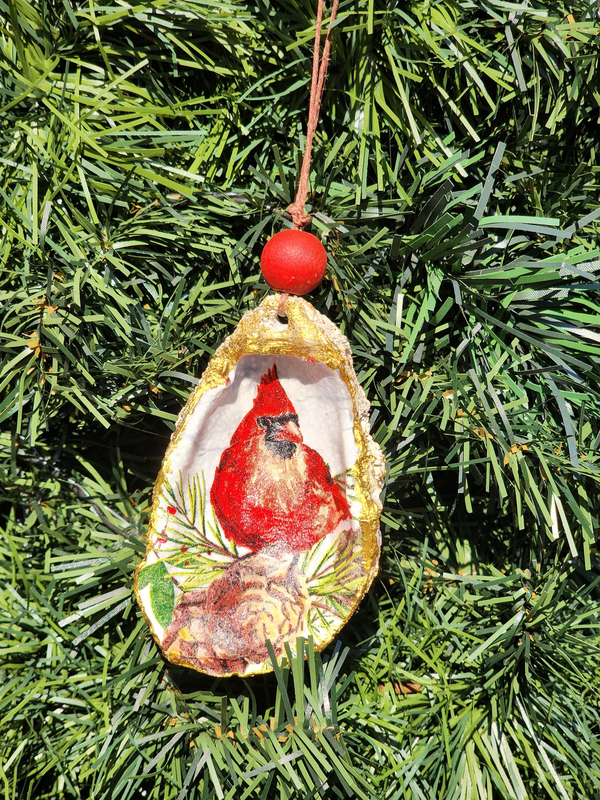 Red Bird image decoupaged on an oyster shell. Shells are approximately 3.5" - 5" inches.