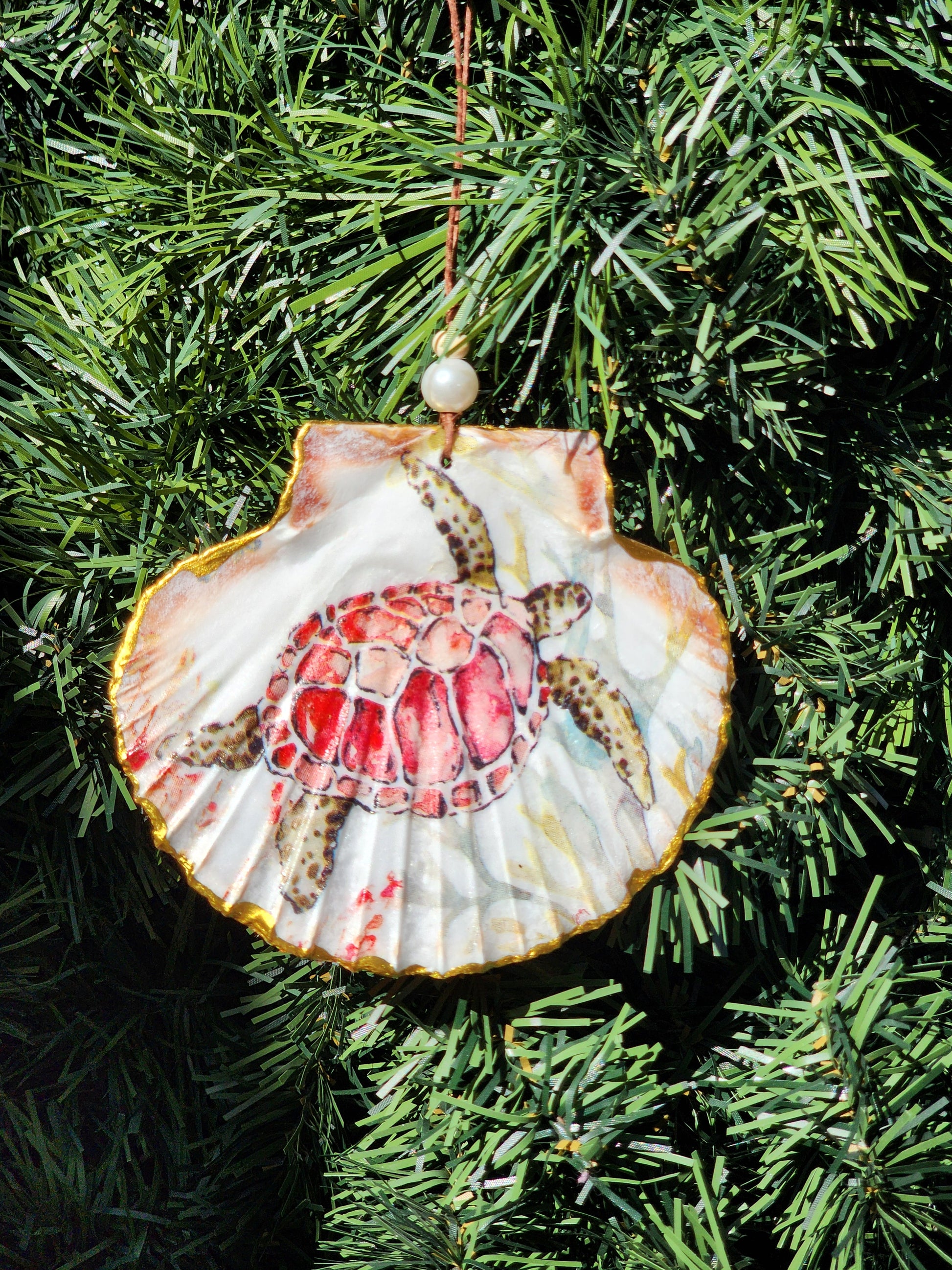 Sea Turtle image decoupaged on a great scallop shell. Shells are approximately 3.5" - 5" inches.