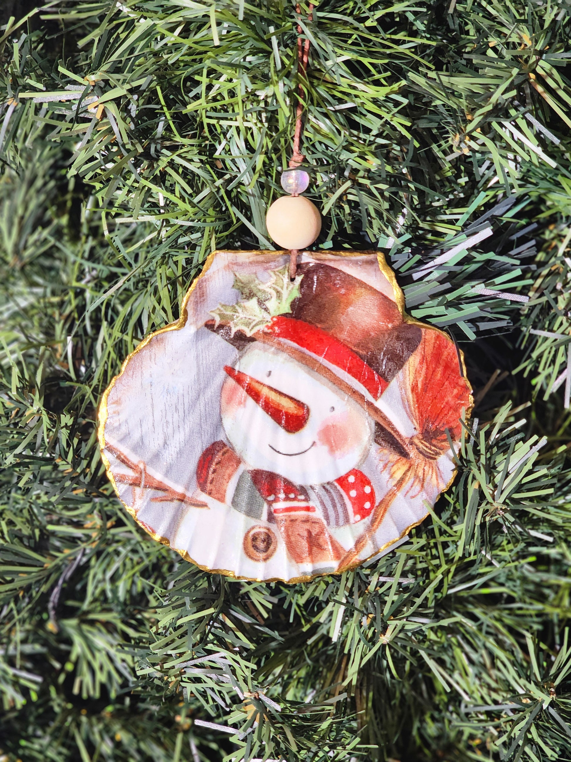 Rustic snowman image decoupaged on a great scallop shell. Shells are approximately 3.5" - 5" inches.